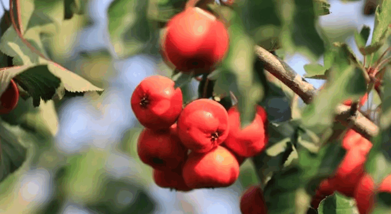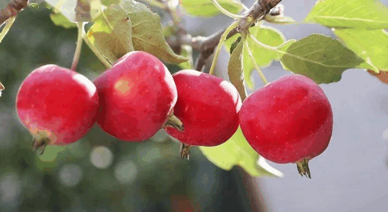 | 品质特征 | 偏关海红果皮呈深红色、果粉厚、果面光洁、果梗长,果实饱满呈扁球形,单果重>12 克,核较小,可食率>85%:果肉呈橙黄或浅黄色,质地细腻紧实,硬度高、肉脆。偏关海红可溶性固形物14%,钙(毫克/100克)>19,维生素C(毫克/100 克)>7.4。 |