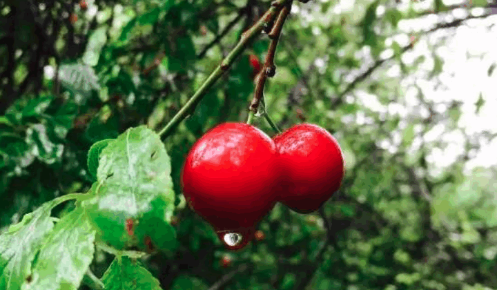 | 品质特征 | 霍城樱桃李外观形似樱桃色如李,故名樱桃李,又俗称野酸梅。果实为小浆果,近球形或椭圆形,微被蜡粉,呈紫黑、紫色、紫红、红色、黄色等多种颜色,粒径~厘米,鲜果单果重.6~9.克,果味酸甜可口,略偏酸性,果汁色泽深红诱人,是提纯上好天然色素的基料。樱桃李是干鲜兼用果品,即可加工成酸梅干,果脯,又是制作饮料、果酱、果酒等保健饮品的上佳原料。 |