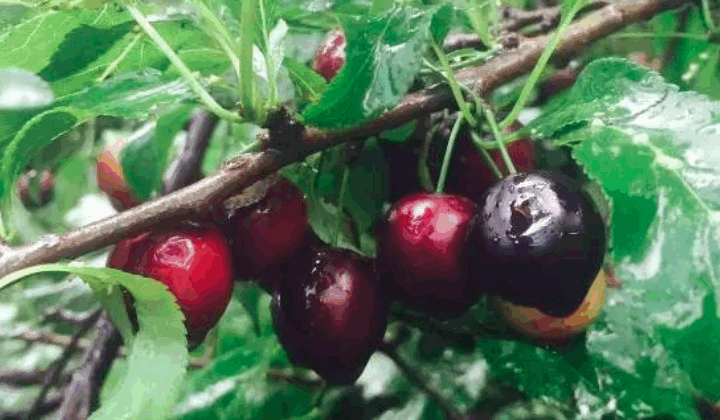 樱桃李外观形似樱桃而颜色如李子,故名樱桃李,又俗称野酸梅,原为野生林果。后经人工种植形成霍城樱桃李果业。霍城樱桃李果实为小浆果,近球形或椭圆形,微被蜡粉,呈紫黑、紫色、紫红、红色、黄色等多种颜色,果味酸甜可口,略偏酸性,果汁色泽深红,是提纯天然色素的基料。霍城樱桃李为干鲜兼用果品,还可加工成酸梅干、果脯、果酱、果酒等保健饮品。