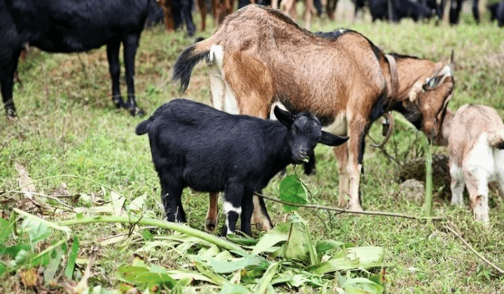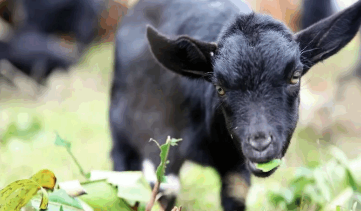 | 品质特征 | 清远黑山羊全身被毛短、黑色光亮;鬐甲高于十字部,头呈三角形,蹄只粗壮坚实;公羊羊角粗大,耳大下垂,下颌有髯;母羊羊角较小、呈镰刀状,尾短且上竖。成年出栏体重30~40kg,属中等体型。 |