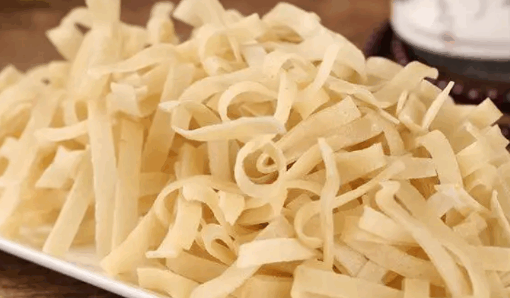 | 品质特征 | 呈藕色,色泽致性较好;具有莲藕豆丝特有的气味与风味,无异味;煮熟后不糊,口感不粘,无砂感,柔软爽口;豆丝条粗细、厚薄基本均匀一致. |