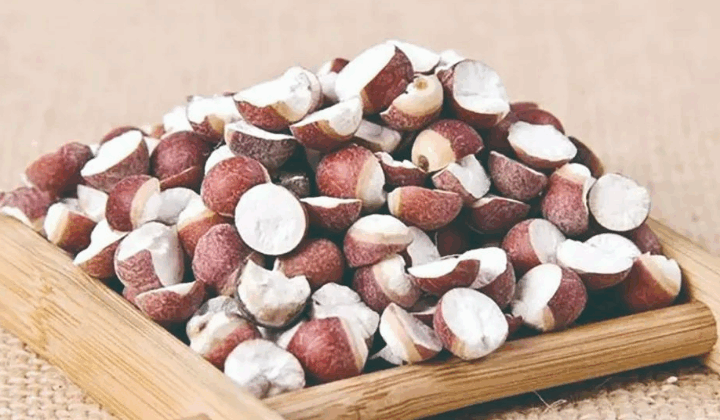 | 品质特征 | 花紫色,种苞状似鸡头,外部带刺,但刺软、不割手,表皮脆,表壳薄、脆,特别容易破裂。烘焙后的芡实果表皮棕红,上附不可抹去的白色粉末,细闻有清新药味,口品尝后口味甜,较少涩味 |