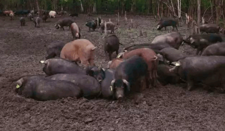 | 品质特征 | 雁窝岛黑猪是以东北民猪为母本培育的优质猪种,全身的毛色为黑色或者花色,产仔多,体质强健,头中等大,面直长,耳大下垂。背腰较平,乳头7对以上。四肢粗壮,后躯丰满,猪鬃密生,冬季密生棕红色绒毛。抗病强、抗寒、耐粗饲,肉质良好,大理石纹分布均匀,肉色鲜红,口感细腻,肉味香。 |