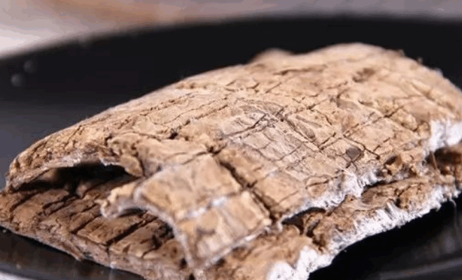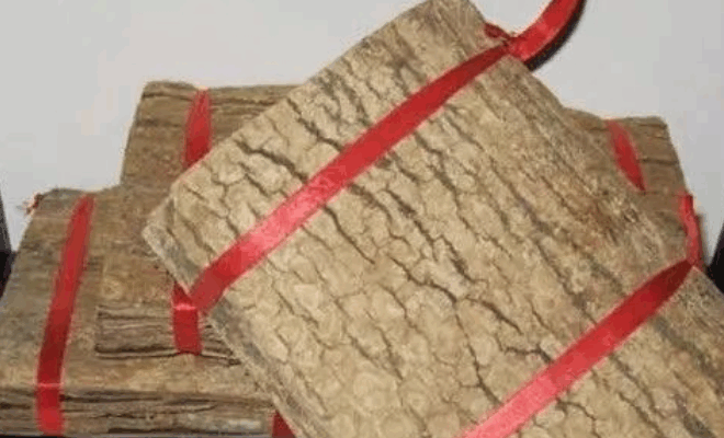 | 品质特征 | 皮厚呈平板状、粗皮少,外表面灰褐色,有浅纵裂纹,内表面暗紫色、光滑,断面白丝多,气微、味稍苦。 |