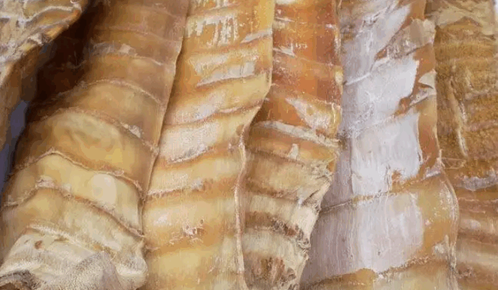 | 品质特征 | “松溪笋干”色泽金黄,头部宽大,尾部小而尖,整体呈锥形,片宽、肉厚、节密,具有笋干的特殊香气味,略带酸味。笋身扁平干净,笋长约10厘米。 |