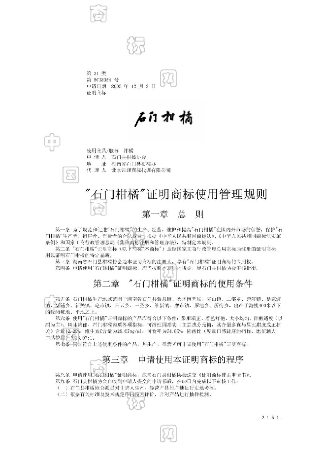 (来源:商标局地理标志证明商标公告 2008年6月27日)