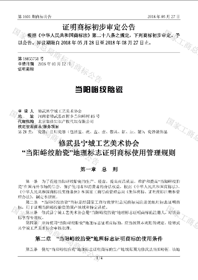 (来源:商标局地理标志证明商标公告 2018年5月27日)