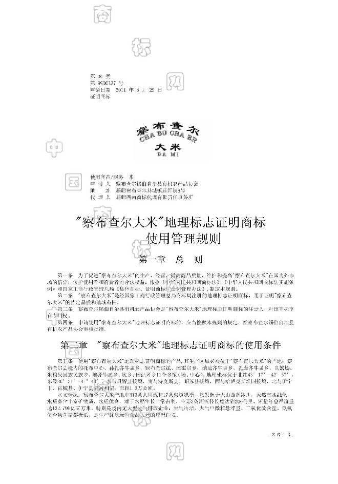 (来源:商标局地理标志证明商标公告 2011年11月20日)