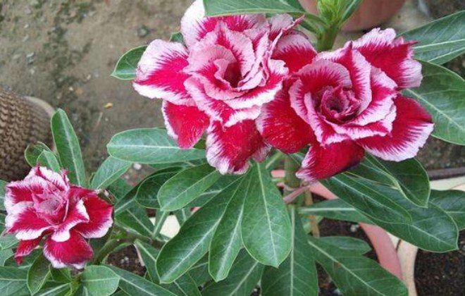 于田沙漠玫瑰生长5-6年后,应进行一次更新复壮修剪。5年以上的老枝,要及时疏除,以促进新枝生长。对于生长衰弱基本失去开花能力的玫瑰,可以重剪,促生新枝。