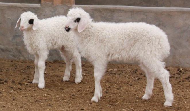 二毛羔羊,35至45日龄左右,毛股长度达到7至8cm出栏;育肥羔羊6至8月龄,体重30至35kg。