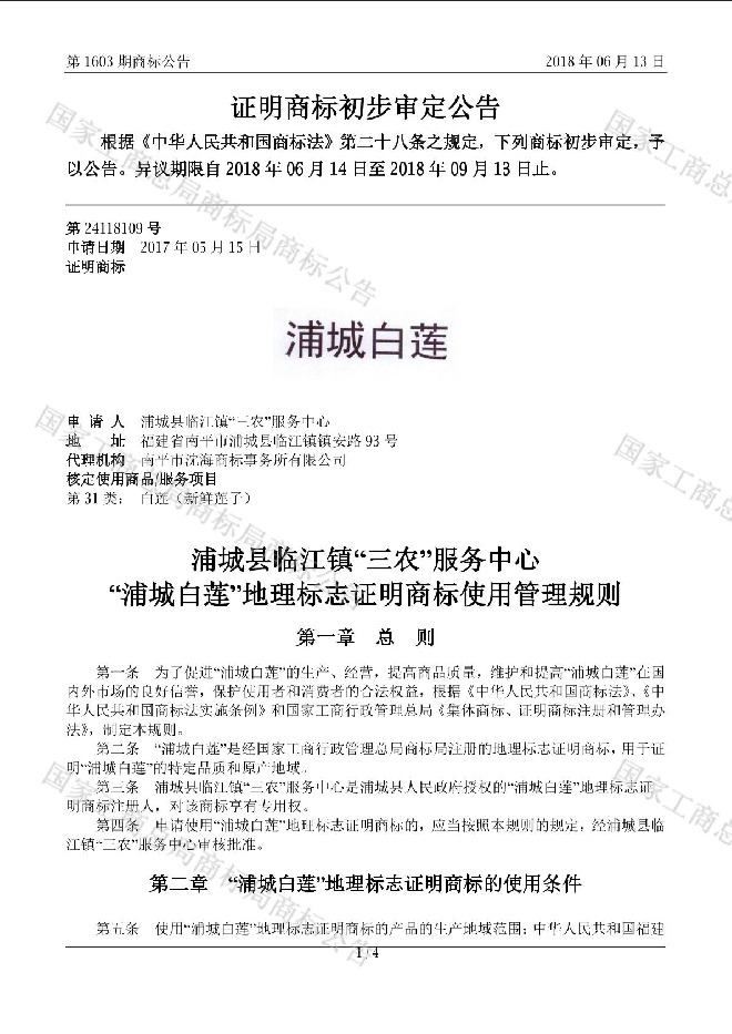 (来源:商标局地理标志证明商标公告 2018年6月13日)