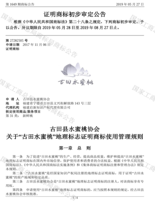 商标局地理标志证明商标公告2019年5月27日