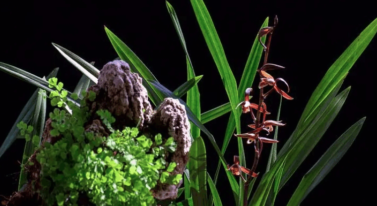 | 品质特征 | 沙湾墨兰根粗壮且长,一株叶 4-5 片从生,叶片墨绿色,呈剑形,叶片宽厚,长约 50-60 厘米,宽约 2.5-3.5 厘米,叶族企生,全缘且有光泽:花营挺直、常高出叶面,可达 50-60 厘米,每个花营有花 7-20 多朵:花开素心,花色以淡紫褐色、白色为主,花苞叶小,尊片呈狭披针形,花瓣较宽短,向前伸长,唇瓣三裂反卷:花香气馥郁,清幽雅致,香气阵阵散发:花期每年 1-3 月,花期较早且准时,常在春节前后一周花开,持续花期长,可达 40多天。 |