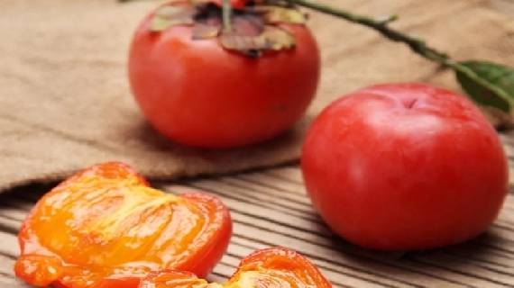 | 品质特征 | 果实中大,果形扁圆略方,成熟果黄绿色,带少量红晕,后熟果果皮鲜红,有薄果粉;果肉橙红色、肉质软,汁少、食用时不流汁,味甜。 |
