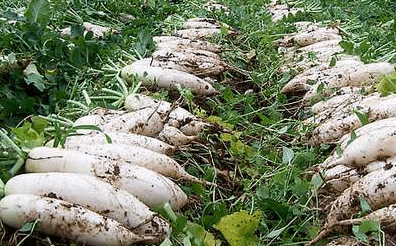 | 品质特征 | 呈圆柱形,体型匀称,个头大,长度约28-32厘米,单重1.6-2.5千克;其表皮薄且光滑洁白,须根少;肉中所含有水分多,纤维少,其纤维含量≤1.54克/百克,肉质脆嫩、甘甜,不糠心,且含有多种维生素、氨基酸和矿物质。 |