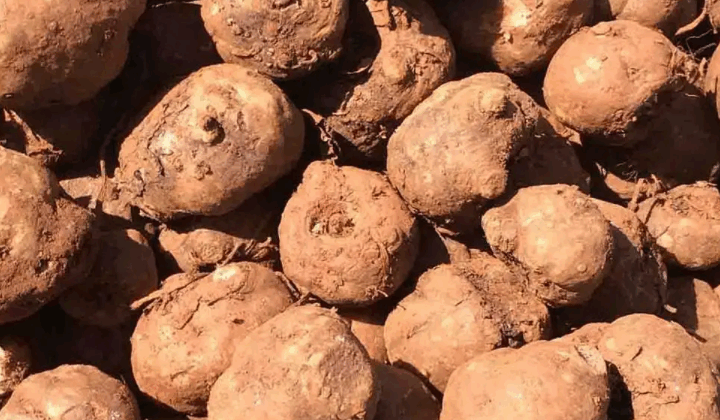 | 品质特征 | 幼苗长势强,出苗整齐,叶绿色,掌状复叶,叶柄花斑色,球茎近圆形,表皮红褐色,有黑褐色小班点,形大,较光滑,鳞芽梢状,粉红色,肉白色。 |