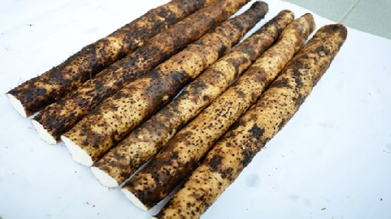 | 品质特征 | 外观呈长圆柱形。表皮呈淡黄色至土褐色,表面长有细须,长且密,须根部表皮呈无光泽深褐色斑点。横切面雪白,不易褐变,肉质细腻,水分适中。蒸煮熟制后具有清香、鲜美、微甜风味及细滑口感。 |