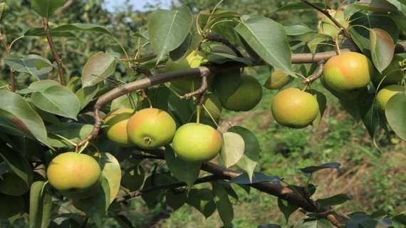 鞍山南果梨2005年2月4日,国家质检总局正式批准对鞍山南果梨实施地理标志产品保护。鞍山南果梨属辽南特产,主产地为辽宁省的鞍山,海城,辽阳,岫岩满族自治县地区,该果以其发源地鞍山市千山区大孤山镇对桩石产区最为著名和正宗,可考证的一株数百年的南果梨祖树就坐落在对桩石村,该果有华夏果中之桂冠之说。鞍山南果梨以其色泽鲜艳、果肉细腻、爽口多汁、风味香浓而深受赞誉,南果梨属秋子梨,故其采摘期在每年的九月初,刚采摘下的果实需经一至两周时间的后贮,方能把果实的色泽、口感、气味充分显露出来。鞍山南果梨这枚奇果,其色泽明艳、果肉细腻、绛汁浓纯、香味馥郁。优质南果梨一般单果重量平均大约70克以上,最大单果可达200克。果皮薄、表皮清洁、绿或黄绿色,向阳面带有红晕,色泽鲜艳,果梗粗短,并保留完整,果心小,果核的细胞少,果肉乳白色。充分成熟后的南果梨果皮变成金黄色,果肉为黄白色,肉质细腻,柔软多汁,酸甜适口,芳香浓郁,风味极佳。