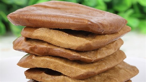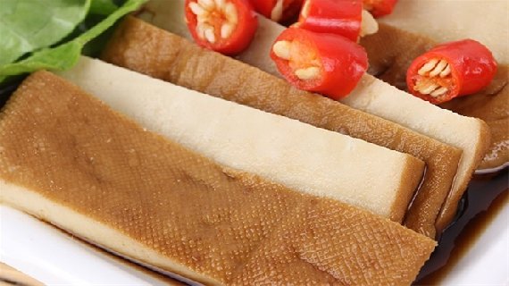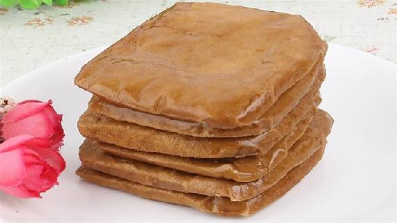 丰乐酱干,安徽省肥西县丰乐镇特产,中国国家地理标志产品。丰乐酱干是一种独具肥西乡土特色的美食,传统酱干采用丰乐河终年清澈的天然活水手工制作,具有色彩纯正、香味悠长、口感细腻、富有弹性、回味清香的特点。2016年12月28日,原国家质检总局批准对“丰乐酱干”实施地理标志产品保护。丰乐酱干制作选用无污染、无病害、籽粒饱满的优质黄豆,经深层过滤的丰乐河水浸泡、清洗后磨浆,再以高温煮浆、石膏点浆形成白嫩的豆腐后,舀入木质大板,稍稍冷却并切成小块,再用小方块纯白棉布将热气腾腾的小块豆腐折包成四角成方的小包,摆上木榨板,加压成型后成为白干胚。白干坯被放入大锅,配上自制的原汁大豆酱、冰糖、茴香、丁香、桂皮、甘草等十余种配料,再加上老鸡汤,用火炖煮数小时,第二天清晨煮开入味后捞出,盛放在匾子里,自然晾干,使其色泽油亮,色、香、味俱佳。制作过程完全遵循传统手工艺,做工精细。这样,经过泡豆、磨豆滤浆、煮浆、过滤、蹲脑、成型、破脑、加压成型、白干坯冷却、过碱、卤制、晾干、真空包装、高温高压杀菌等18道复杂的流程以后,才能做出色彩纯正、香味悠长、口感细腻、富有弹性、回味清香的丰乐酱干。除了丰乐酱干,这里还有兰花干,其制作工艺前期与丰乐酱干一样,但到了白干坯的时候,需用刀两面斜切18刀,刀深三分之二,把切好豆腐干挂起晾干;晾干之后将豆腐干放滚水中,煮5分钟捞起滴干水分,放入油中,炸至稍硬捞出。后面的制作程序就跟丰乐酱干一样了。成型后的干子色泽红亮,其形似兰花,故名兰花干,具有质地筋柔,色彩纯正、香味悠长、口感细腻、富有弹性、回味清香的特点。