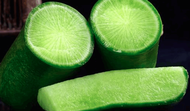 | 品质特征 | 细长圆筒形,叶丛半直立,长13-15cm,横径8-10cm,单个重0.5-0.9公斤,根部约1/2露出地面,皮较薄,为比较有光泽的青绿色,尾部埋入地下,为玉白色,有须根,肉质根表皮光滑;长丰青萝卜肉质脆嫩、汁多丰富而渣少,吃起来口感清爽,味甜并稍辣;长丰青萝卜富含水分和维生素。 |