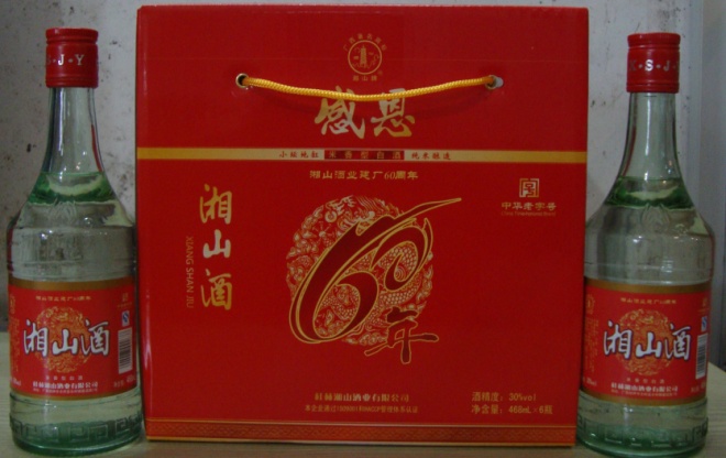 1.感官特色:无色,清亮透明,无悬浮物,无沉淀物;蜜香清雅;酒体醇和,入口柔绵,落口甘净,味爽怡畅,具有湘山酒的独有风格。