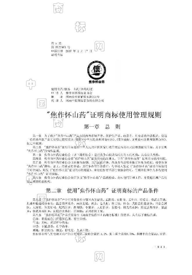 (来源:商标局地理标志证明商标公告 2007年12月13日)