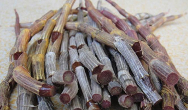 采收时间为11月至次年1月。采收实行采嫩留老,选择叶片普遍脱落,茎条呈灰白色的当年生成熟茎条,并于茎基部以上留一个带肉质的茎节处用利刃切下采收。采收后及时剔除残叶,按2-3kg/把捆扎,置于阴凉干燥处,防晒、防冻。