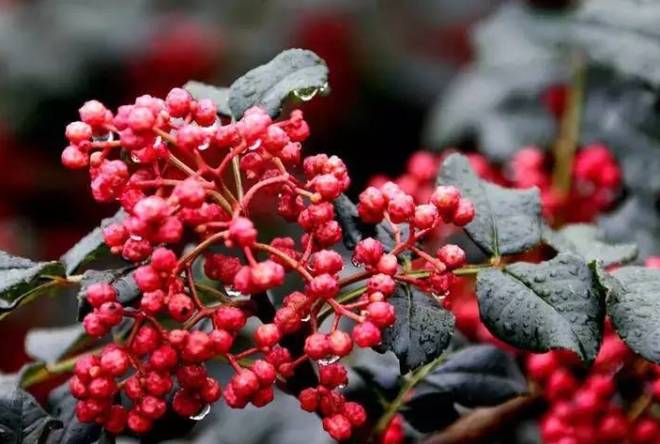 因种植地海拔高度不同而采摘期不同,一般为6月下旬~9月上旬,当花椒果皮全部变红,油腺凸起,呈半透明状,种子完全变黑时采收。