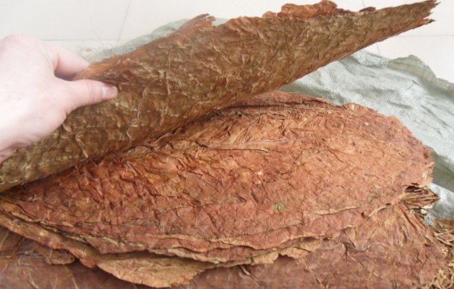 (2)品种范围:亚布力晒烟由烟农经过多年选育,主要为大叶黄。一般选择生长健壮、产量高、节间适度、叶片厚薄适度、大小整齐、叶脉细、耐旱、耐涝、抗病力强的烟株留种。