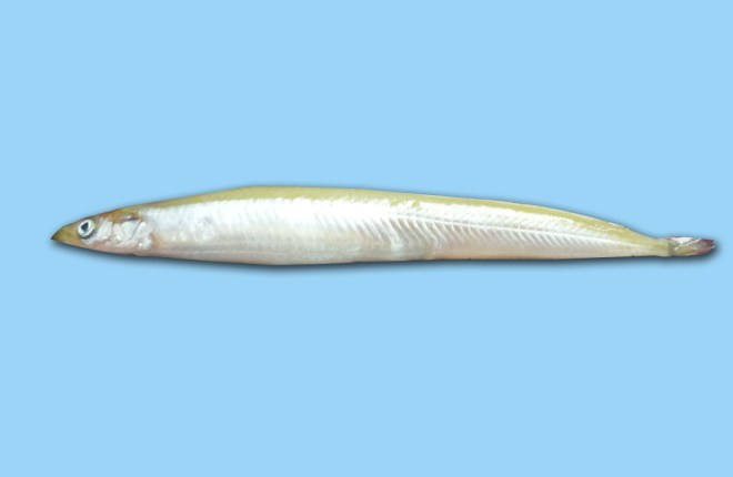 玉筋鱼(Ammodytes personatus),玉筋鱼科,玉筋鱼属,因形体酷似山东农家的面条,在本地俗称“面条鱼”,又名沙里钻,近海沙泥附近小型鱼类,体长柱状,稍侧扁,成鱼长约10-13厘米。体侧淡绿色,背缘灰黑色,腹侧白色,半透明,口大,有犬齿。鳞很小,圆形。背鳍很长,臀鳍与背鳍相似,后端亦伸不到尾鳍基,无腹鳍(张春霖等,黄渤海鱼类调查报告)。在西北太平洋的朝、韩、日、俄远东海区均有分布,黄渤海是其分布南限(孟庆闻等,1995;陈昌海,2004)。其分布具有地域性,终年栖息于近海适宜的某一海域,仅作深、浅水游动,而不进行长距离洄游。