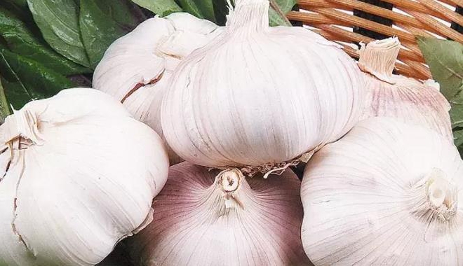 (2)内在品质指标:昭苏大蒜营养丰富,含维生素B1在0.03-1.2(mg/100g), 维生素B2在0.01-0.07(mg/100g),维生素E 0.3-0.9(mg/100g),蛋白质7.00-8.00(g/100g),粗纤维0.69%-0.80%,维生素C5.00-7.00(mg/100g),尼克酸在0.3-0.7(mg/100g),热量600-750(千焦/100克),钙130-155(mg/kg), 铁5-15(mg/kg),钾5000-6000mg/kg,磷1300-1700(mg/kg),锌4-9(mg/kg),钠15-23(mg/kg),镁270-320(mg/kg),铜0.5-1.2(mg/kg),硒0.05-0.08(mg/kg),锰1.5-3.5(mg/kg)。