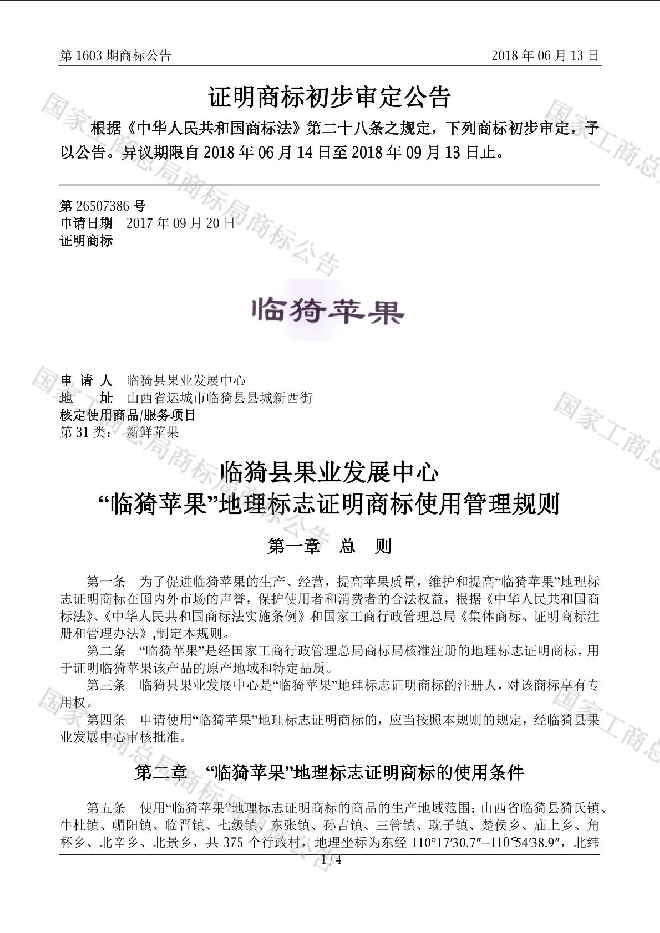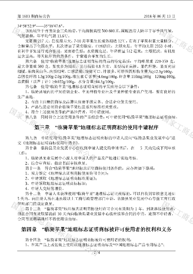 (来源:商标局地理标志证明商标公告 2018年6月13日)