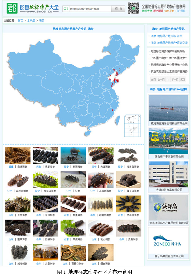 地理标志海参产地分别分布在山东(14个)、辽宁(8个)、福建(1个)、河北(1个)等省市区。