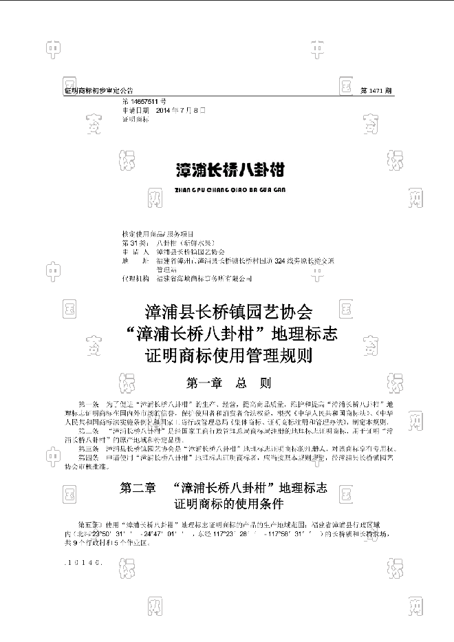 (来源:商标局地理标志证明商标公告 2015年9月13日)