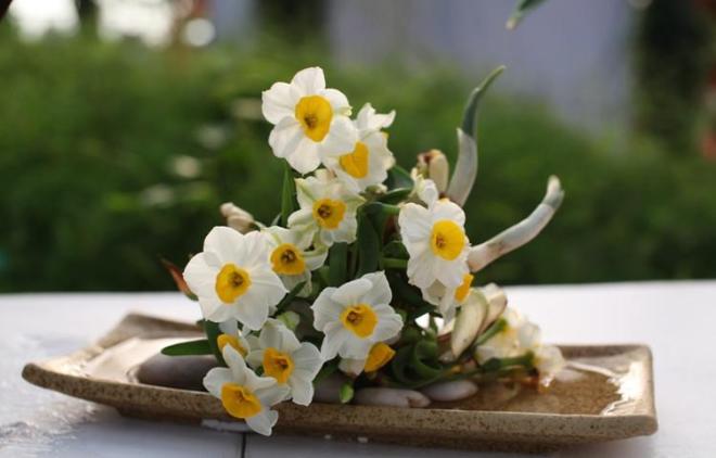 1. 感官特征:花球主周茎22cm至30cm。内有花枝4至9枝,两边各带1至3个侧芽。花球紧实、敦圆、鳞茎外皮光滑、饱满。具有花箭多、花期长、花味香、花姿美和抗逆性强等特点。