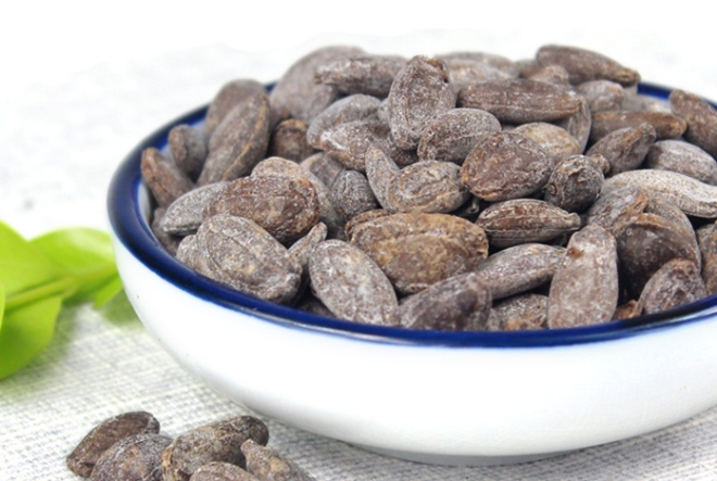 1. 感官特色:呈扁平卵状椭圆形,长12mm至18mm,宽6mm至10mm,厚约4mm至6mm,外壳浅棕色及棕褐色,壳薄而坚硬光滑,近边缘处有一圈棱线,籽仁呈黄白色,富油性,籽粒大小均匀、颗粒饱满,千粒重在200g至260g之间。具有固有的香味、滋味,具备壳薄、仁肥、质脆、香浓、味甘、口感好的特色。